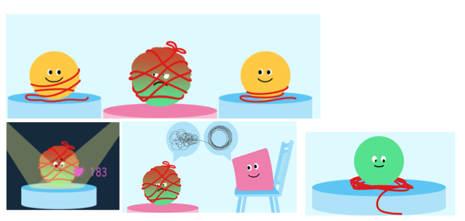 Lopetusosiossa animaatio visualisoi kertojan sanomaa: hahmo rentoutuu rannalla, liikkuu joogamatolla ja osallistuu terapiaistuntoon. Hahmon kerättyä voimavaroja, punainen lanka ympäriltä löystyy, kuvaten stressin hellittämistä. Animaation tavoitteena on paitsi informoida, myös antaa toivoa. Haastavista lähtökohdista huolimatta, jokaisella on mahdollisuus löytää hyvinvointia ja jaksamista arkeensa.